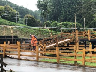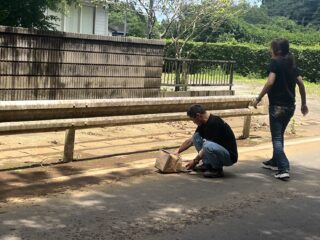 雨が降っていましたが、学生さんたちや老人会の皆様で、