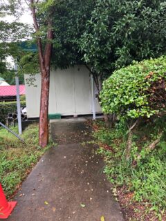 植え込みの伸びた枝が通路をふさいでいたので、通る部分を刈りました。