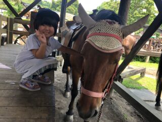 アイヒメちゃんに乗って、お礼にナデナデをする❤
