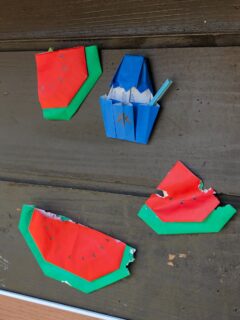 折り紙作品を喰われたが、まさかの「スイカ」を喰われた。
