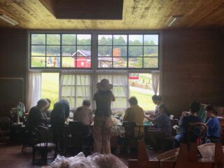 ウール工房を覗いてみると、みなで話しながらウールをほぐしにかかっている瞬間でした。