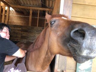 「そういえば、今日も(牧場に)来てくれていたな‥さっき姿を見かけたぞぃ」と、場内を探し‥ 発見!
