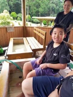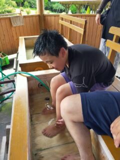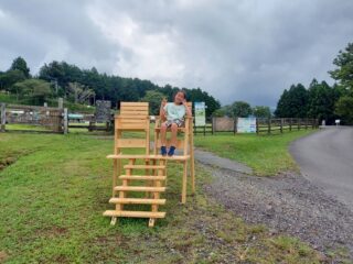 10日ほど前から、「マキの炎でわかした、アツアツ【足湯】」は、「高原の水でつめた~い【足湯】」に