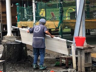 昨日はハンマーも持って上にあがり、木材部分もパンパン叩いて殴打する「音打ち検査(おんうちけんさ)」も実施。