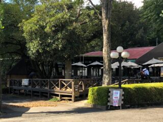 アルトお兄さんが机を拭き、イノウエお兄さんがブロアーで徹底的に葉っぱを噴き出して、朝の掃除風景。(昨日)