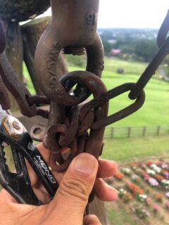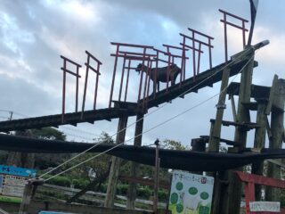 ブランコのチェックのついでに、「めぇ~神宮」の「ロープの動きがきつすぎる問題」も緩和する。