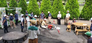 担架の使い方・消火器の使用・放水ポンプの使用方法 について、皆で学びました。