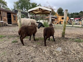 お隣には、北海道から来たオシオおばさんとオソラおばさん(サフォーク)がいる。
