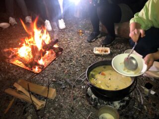たき火を囲みながらお料理が進む、素敵な時間。