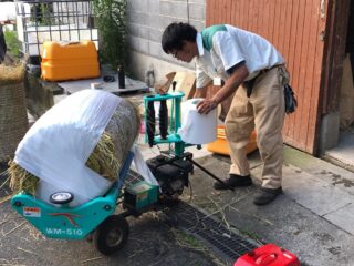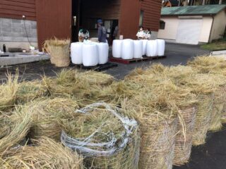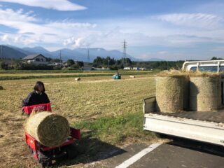 無農薬で頑張る白糸ファームさんから、米をとり終わった稲わら(茎部分)を頂いて
