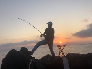 仲間と共に、一晩中磯釣りに。