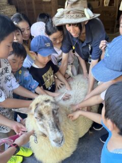 南アルプス市の小学生の皆様が、羊の交流を通じて「学び」に見えました。