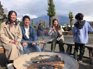 「たき火でバームクーヘン作り」