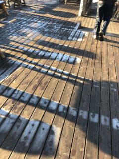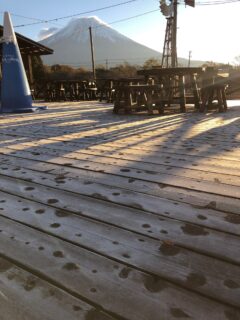 湿気がある冷え込みだったので、木のデッキが