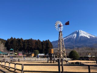 それを眺めながら、馬の朝の運動をするみんな(写真左)