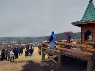 かみしばいの鬼橋のお話通り、この地域では鬼はすでに退治されているので「これで終了です」と宣言する。