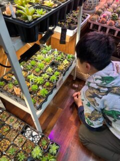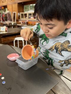 ダイチ君が、真剣にパーツを選び、ハチを飾り付ける…