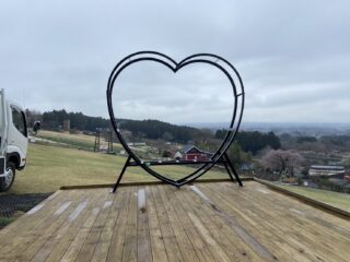 海の見える丘の「ちょびっと新テラス」に、新しいフォトスポットが設置中!