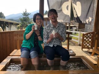 山の上の足湯、富士山を眺めながら、ソフトクリームを食べながら入れる足湯♨なのでアリマス。