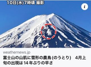 農業を始める合図の、雪で出来た鳥模様「農鳥」が現れたそうです。