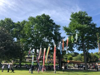 子供さんたちに遊びつくされた鯉のぼりたち、本望に違いない… (勝手に思う)