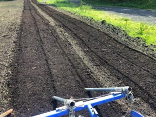 この様に(トラクターに取り付けて)ミゾをつける道具は売ってますけどね(;^ω^)
