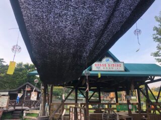 乗馬コーナーに、日よけとミストと風鈴がつきました!