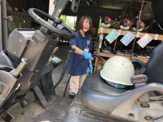 先日はハラノお姉さんが、フォークリフトを整備してくれておりました。