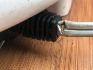 電気コード切れてんじゃん。