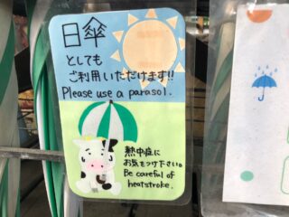 貸し傘、日傘として使う事を表示し、ご利用いただいております。