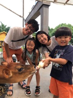 ミルクやり写真のポイント2つは「仔牛が一生懸命飲んでいる様子」「子供さんの表情」が両方とも写っている事。