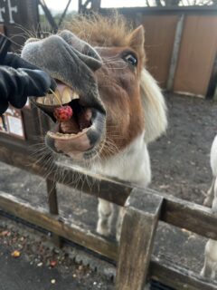 大好きな木の実「ヤマボウシの実」をあげるトダお姉さんから📸