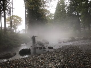 河の周辺だけ、川霧が覆っており、近づくとひんやり…♪