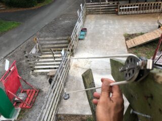 「めえ~神宮のロープが調子悪いな」(上からの写真=ヤギの眺め)