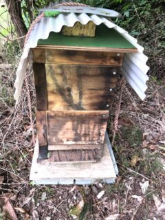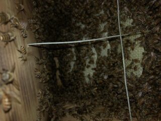 先週、新たなニホンミツバチ様がお入りくださった、私の「待ち箱」を覗いてみる。
