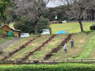 同時に耕していたので、あおられながら… 作業を急ぎで進める。