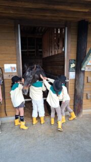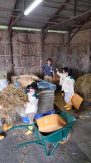 やさしいサイトウお姉さんと、馬の部屋をお掃除したり…