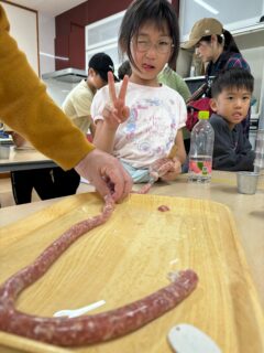 ②良い張り具合で、ソーセージをムリムリと作ってゆくところ