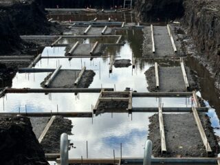 っと言いたくなるほどの、水のたまった建物建設現場。