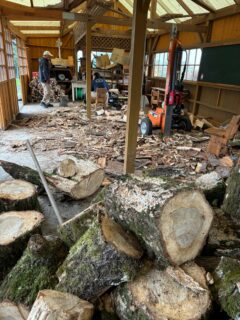 倒して、切って、運んで、割って、乾かして、束ねる。