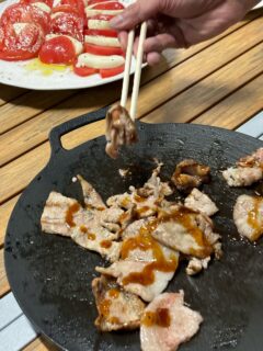 放牧豚をいただきつつ、ミツイお兄さんと作ったチーズをカプレーゼにするw