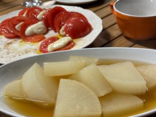 「抜いた大根でおでんと雪見鍋を作り(🦀入り)、サツマイモはチップスにする」