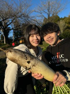 昨日は私が収穫を担当し、せっかくなので畑に行く途中に「空飛ぶホウキ指南📸」を行う。