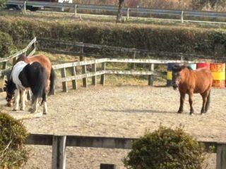 小さい馬3頭が一緒に運動中。