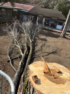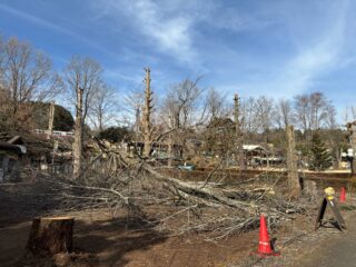 こういうのは、慣れていない人が切ると「チェーンソーで切った瞬間落ちてくる」という事故が発生しやすいので