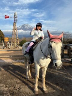 アユさん、白馬のスノーチャペルおじいちゃんに乗り、ご満悦❤