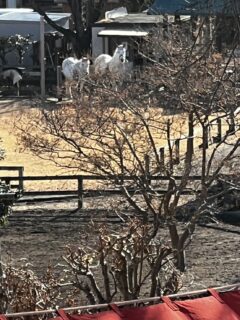 「どんどの喧騒」を遠くから眺めるスノーとパールちゃん
