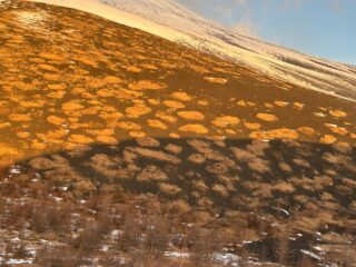 森林限界のすぐ上は、低木や草、コケが生えています。