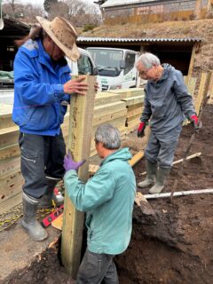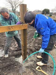 柱をガッチリ埋めて、柵がどんどん出来てゆきます。