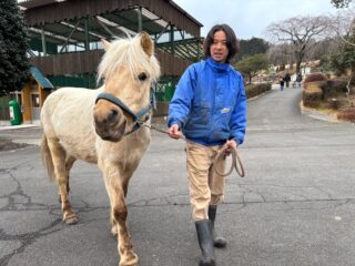 オシオお兄さんが、新しい馬の運動を終えて小屋に戻る瞬間📸